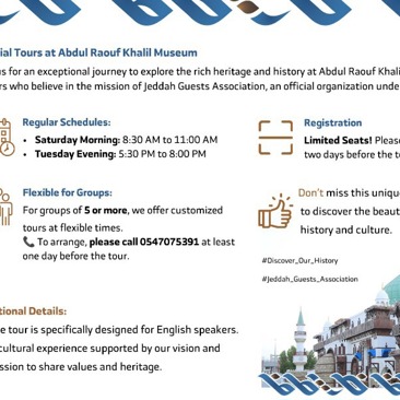 تنفيذ فعاليات وجولات سياحية مبتكرة لزوار جدة، تبرز عمقها الإسلامي وجمال المدينة وكرم أهلها، بالشراكة بين جمعية ضيوف جدة والمواقع السياحية والتراثية والاجتماعية في المدينة. يهدف الم...